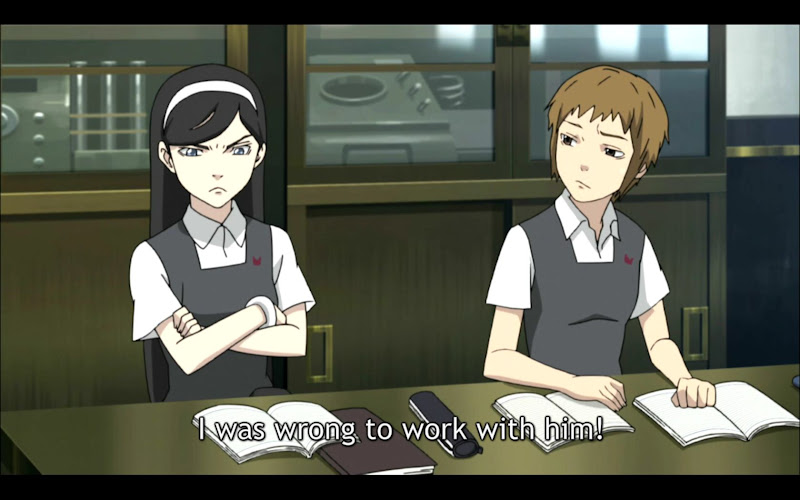 The first episode is about a poltergeist haunting in place of the dead principal, the second episode is about a time traveler who returns from the future in order to prevent an alien attack, and the third episode plays out like a wacky romance anime. On paper those two plot lines sound like they couldn’t possibly fit together but the early episodes of Occult Academy enable these elements to work well together and it is fresh that a show is attempting to transcend the tropes of these genres by combing them, by weaving them together. But that pattern soon ends and Occult Academy becomes a monster of the week show where the group encounters a new occult-esque problem and go off to find its source while the main plot is completely ignored. This seems comparable to the X-Files where each episode Mulder and Scully encounter a new supernatural element and attempt to disprove it. However, the monster of the week episodes of Occult Academy have the characters doing a lot of running around and participating in cheap action sequences instead of exploring the source and mythology behind these unique creatures. I have always been a fan of stories that have been able to combine elements from different genres. Robert Heinlein’s Glory Road and the anime Scrapped Princess filled that desire but Occult Academy constantly fell short because of its silly tone but also because the show didn’t juggle its genres well. Not that all the elements of Occult Academy failed, a lot of the genre mixing was interesting and gave the show its initial shine. There was simply too many elements playing in this and no one genre was treated with proper respect.